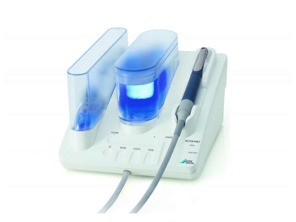 Prístroj na ošetrenie paradontitítdy a periimplantitídy. Využíva unikátny systém pozdĺžneho kmitania pracovnej koncovky, ktorá prenosom UZ energie na vyplachovaciu tekutinu vytvára kavitačný efekt v ošetrovanom chobote. Kavitácia účinne odstraňuje konkrementy a biofilm bez nežiadúcej traumatizácie mäkkých tkanív. Vector je vysoko bezpečný, účinný v čistení a výplachu ale šetrný ku tkanivu, ide o takmer bezbolestné ošetrenie.