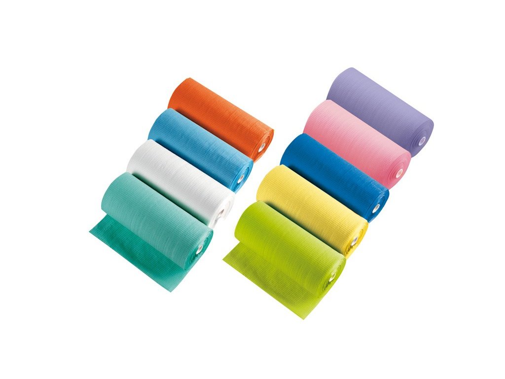 Jednorazové ochranné zástery pre pacientov v rolke, pozostávajúce z vysoko savého papiera, viacvrstvového a s reliéfnou vodeodolnou polyetylénovou vrstvou, bez použitia lepidiel. Rozmer: 61 x53 cm. V rolke je 80ks. Rôzne farby.