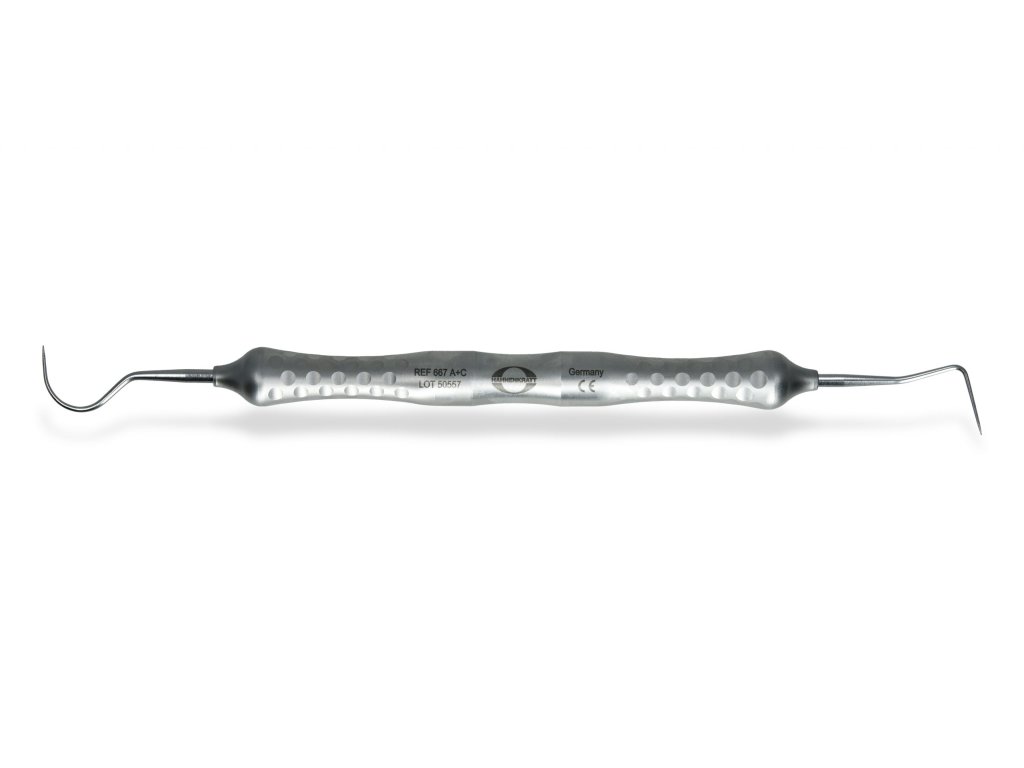 Ergonomická obojstranná vyšetrovacia sonda vyrobená z nerezovej ocele so saténovým finishom. Dutá a perfektne vyvážená.