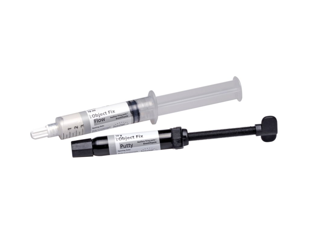 Pomocné vypaľovacie pasty IPS Object Fix s rôznou viskozitou na podporu všetkých keramických výplní počas vypaľovania a kryštalizácie. Pasty sa používajú na stabilizáciu a zaistenie náhrad na podporných kolíkoch z nitridu kremíka alebo priamo na podnose z nitridu kremíka. IPS Object Fix Putty a IPS Object Fix Flow sa ľahko nanášajú a odstraňujú po vypálení.