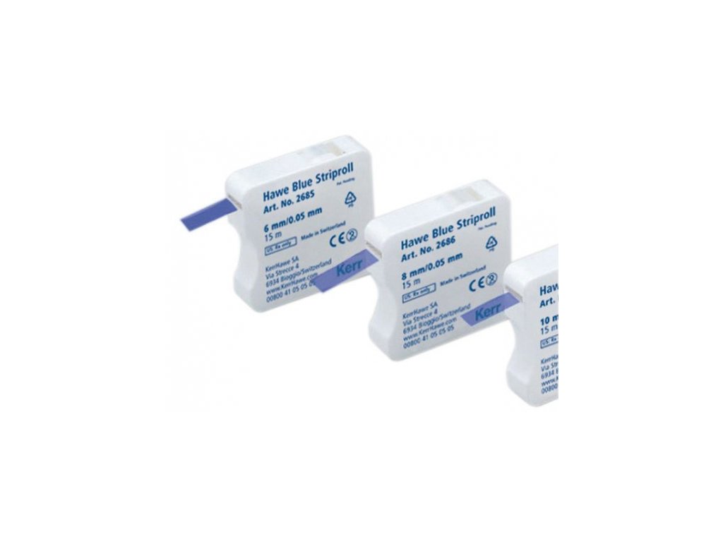 Striproll je polyesterová páska modrá v pohodlnom dávkovači pre všetky výplne predných zubov. Modrá farba zvyšuje kontrast medzi matricou a štruktúrou zuba. Hrúbka 0,050 mm, dĺžka 15 m.