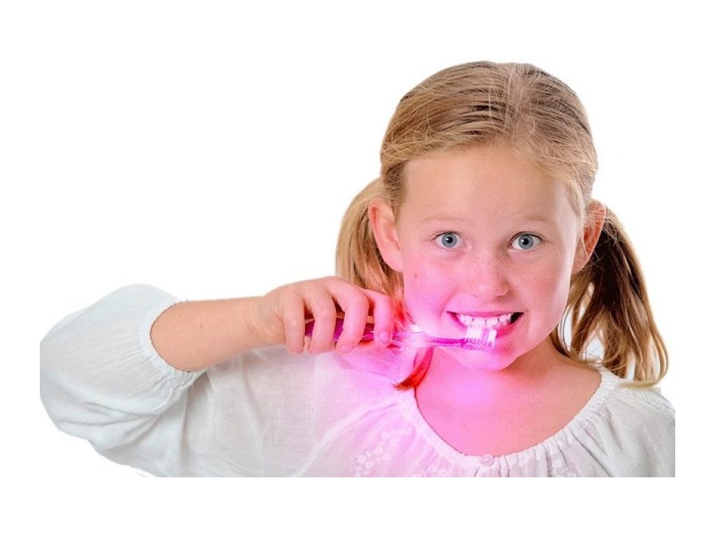 Blikajúca, detská, zubná kefka. Integrovaný časovač meria 3 minúty trvajúce blikanie LED svetla, ktoré indikuje správnu dĺžku umývania zubov. Umývanie je pre deti zaujímavejšie a zábavnejšie. Dostupné vo farbe žltá, zelená, oranžová, červená, modrá, ružová. Požadovanú farbu prosím uveďte v poznámke.