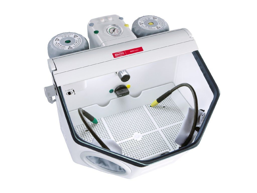 Akciová cena 1550 Eur platná do 31.05.2026. Pieskovacia jednotka s 2 nádržami a veľkou komorou. Veľká pieskovacia komora (20 l) umožňuje dostatočnú voľnosť pohybu. Dobrá a dlhotrvajúca viditeľnosť objektov vďaka silikónom potiahnutému sklenenému panelu (10-krát dlhšia životnosť). Vysoká ekonomická efektívnosť, pretože nedochádza k zbytočnému spätnému toku pieskovacieho materiálu. Cielené, presné pieskovanie vďaka vynikajúcemu osvetleniu tryskacej komory technológiou LED. Obsahuje: 1 x 25–70 µm, 1 x 70–250 µm, vrátane 2 trysiek 0,8 mm / 1,2 mm.