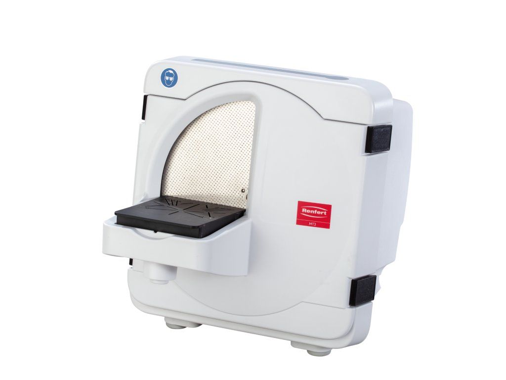 MT3 vrátane kotúča Marathon. Optimálny výhľad na model vďaka 10° sklonu jednotky. Jednoduché vedenie sadrového modelu pomocou drážkovaných uhlových čiar na frézovacom stole. MT3 je pôsobivý vďaka svojmu mimoriadne výkonnému motoru. Výhodou je rýchla zmena uhla vyžínacieho stola pomocou praktického sklápacieho mechanizmu (90°/ 98°). Pri otvorení predných dvierok bezpečnostný spínač zastaví motor a vodu. Rovnomerné pokrytie optimálne umiestnenou rozprašovacou trubicou zabraňuje upchávaniu vyžínacieho kotúča.
