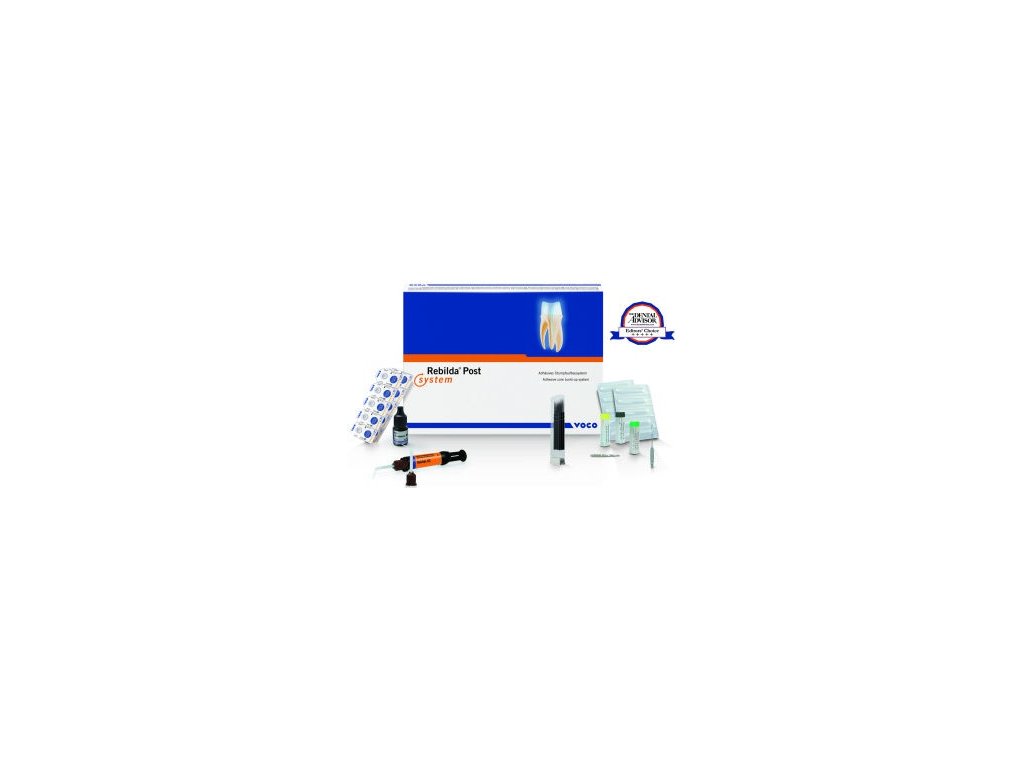 Skleneným vláknom vystužené kompozitné čapy. Adhezivný dostavbový systém. Rebilda Post intro set, 5 čapov, 1 vrtak z každého priemeru.